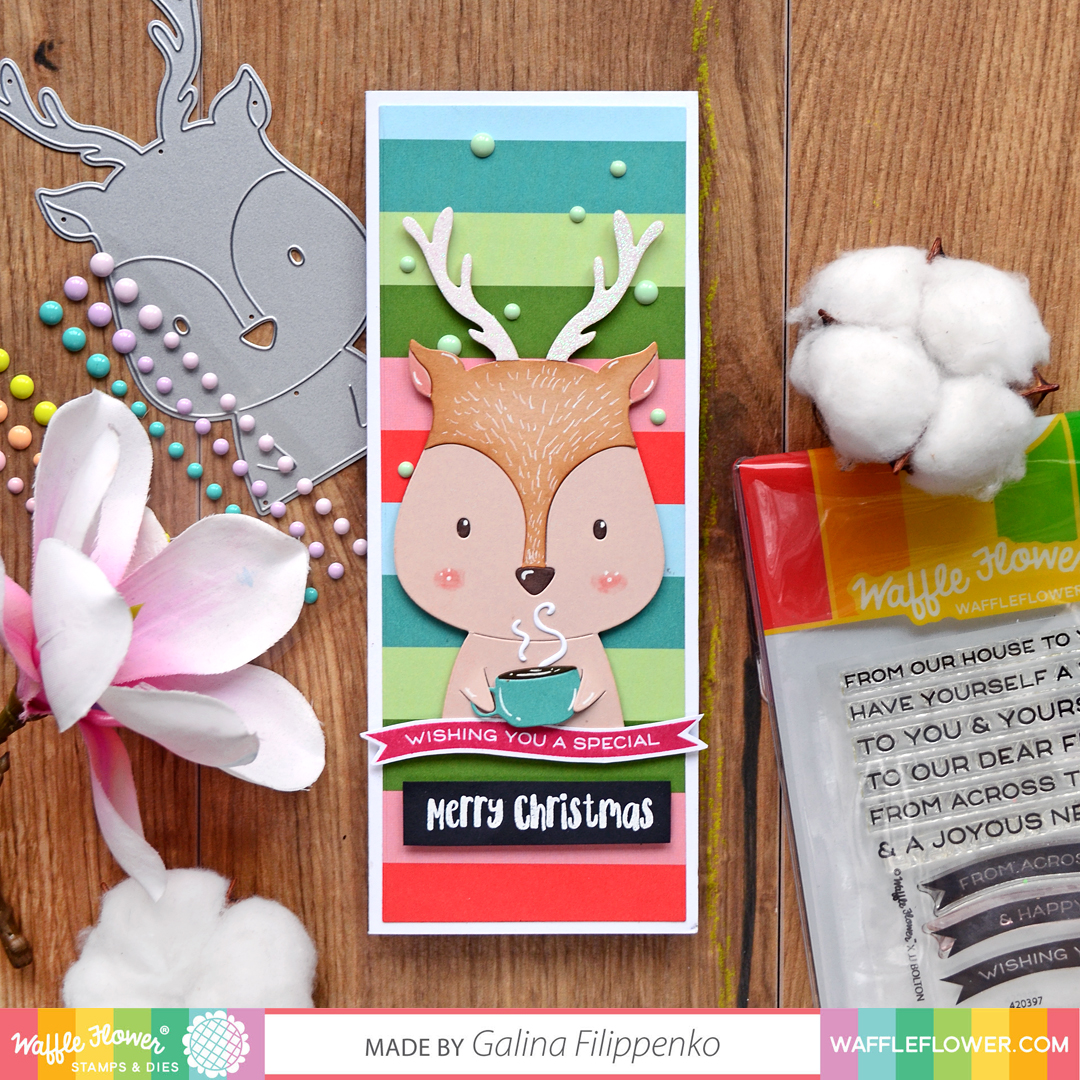 For my card I picked fep paper pads from last paper release from Waffle Flower Crafts: Christmas Stripes, Happy Gnomes, Half-Half Lines - Christmas Paper Pads.